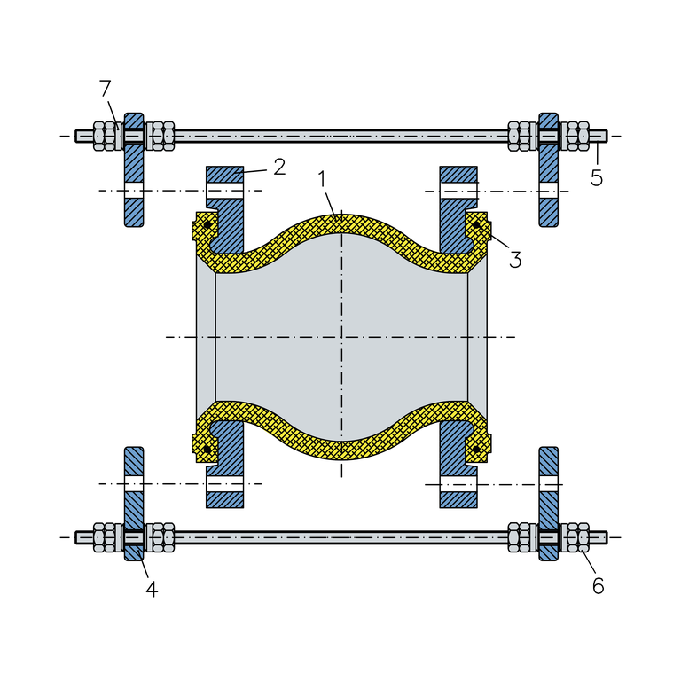 • Bellows: Various elastomers such as EPDM, EPDM Food Grade, Neoprene, Nitrile, Hypalon, Viton